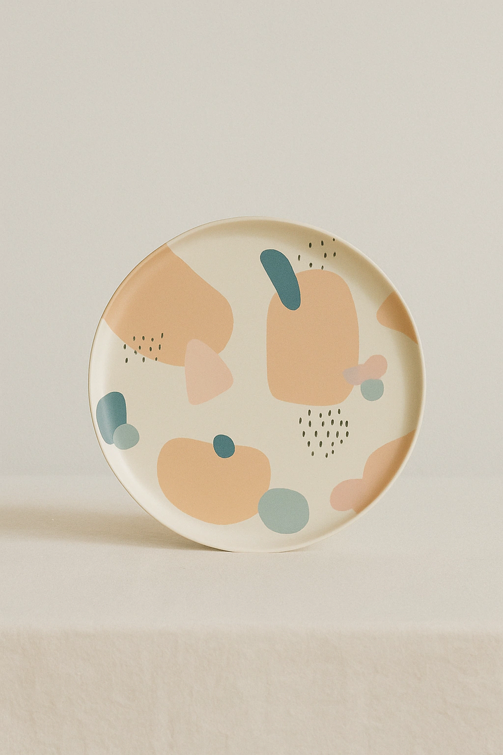 Plato acrílico de alta calidad con diseño central en tonos rosa y camel.